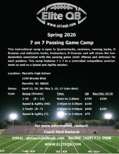 Contact us at (609) 731-0508 or Email us at qbcoach@eliteqb.com if you are interested in attending.